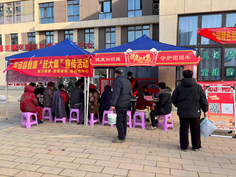 “摊位”虽小,服务俱全。在孟集镇集市一角的义诊区,医务人员正耐心地为居民测量血压、解答疑问:“阿姨,您的血压稍微偏高,平时要注意清淡饮食,按时吃药。”活动现场,“医保政策摊”和“健康知识摊”并列展开,红色横幅洋溢着节日喜庆,展板前围满了驻足阅读的群众。各乡镇卫生院抽调全科、内科、中医科等骨干医护人员组成服务团队,不仅提供免费血压、血糖检测和中医体质辨识服务,还围绕医保报销、家庭医生签约、分级诊疗、传染病预防等热点问题开展面对面讲解,图文并茂的医保宣传折页和健康提示卡成了群众手中的“抢手货”。